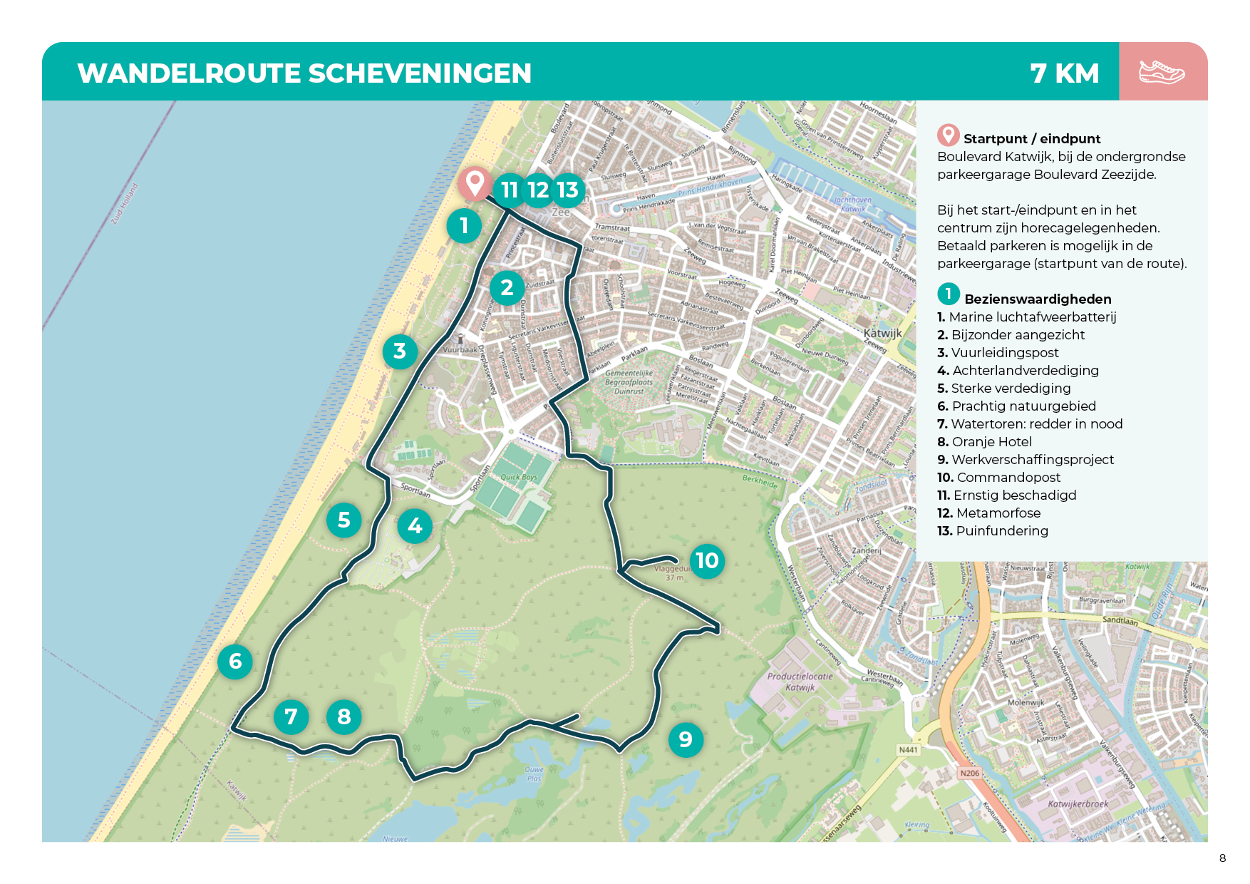 wandel je verder langs de bunkers van een Duits hoofdkwartier. Een deel hiervan is in beheer bij het Atlantikwall Museum Den Haag en te bezoeken. De wandeling eindigt op de boulevard, waar sporen van oorlog en wederopbouw samenkomen.